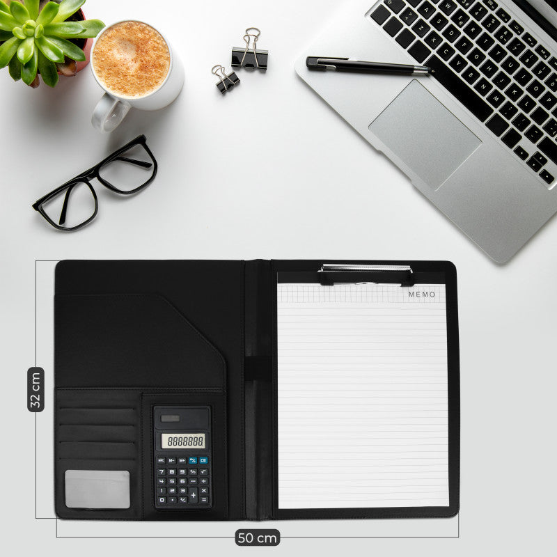Conferentiemap A4 - Zwart - Inclusief calculator - Luxe Schrijfmap Opbergmap
