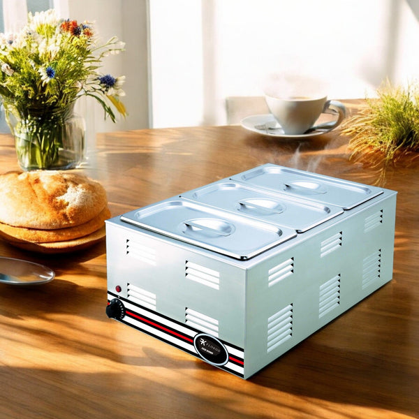 Elektrische Warmhoudbak met 3 Grote Bakken - 3,3 Liter per Bak - Houd Gerechten Perfect Warm - 3,3 Liter per Bak - 1200 Watt