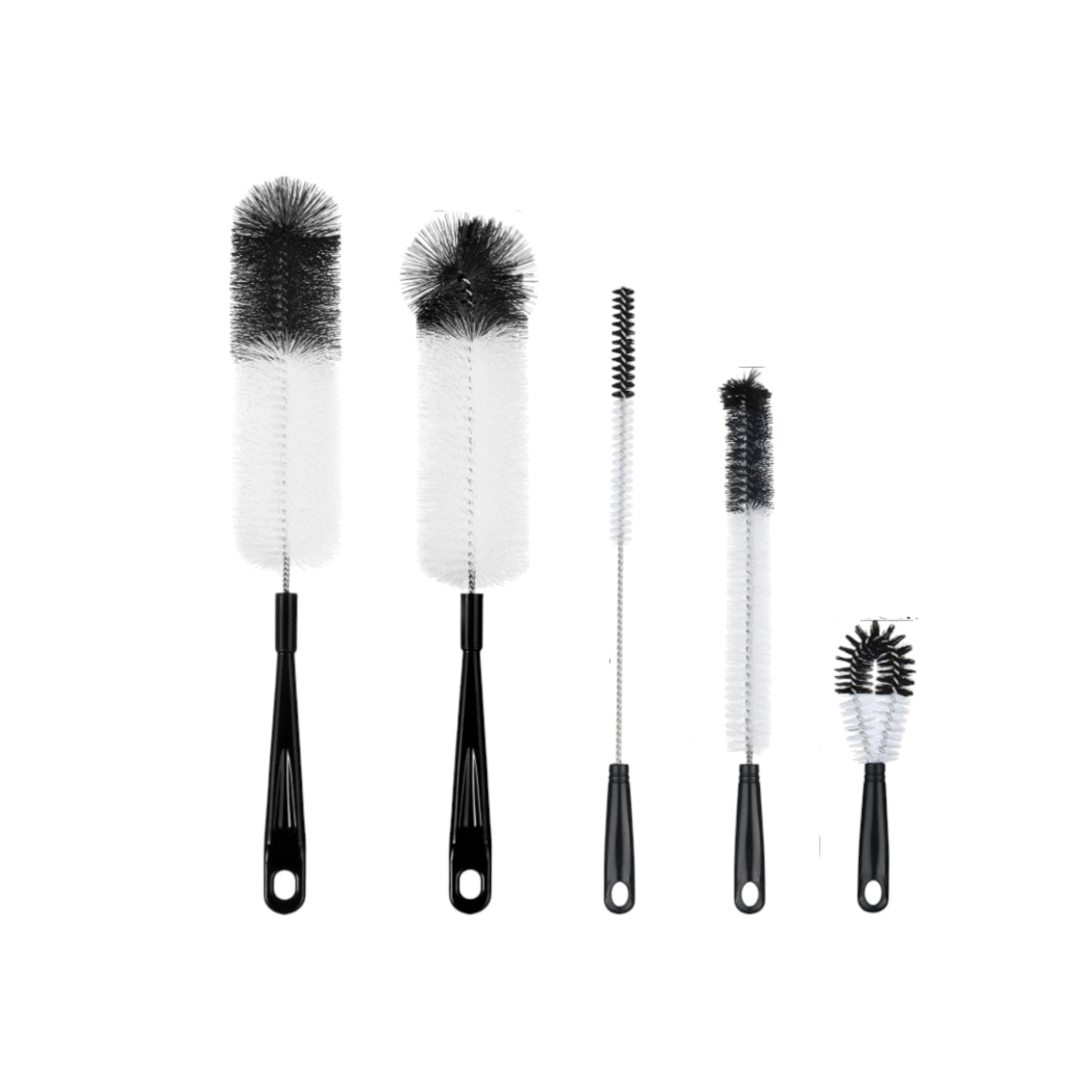 Flessenborstel Set 5-delig – Flessenreiniger voor Babyfles, Thermosfles, Waterfles en Karaffen – Lange Flessenborstels – Met Ophangoog