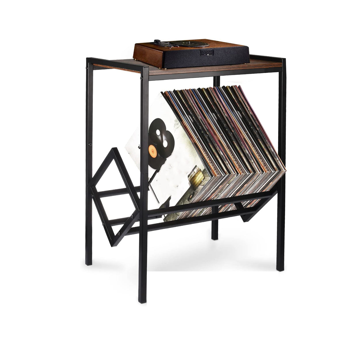 LP Opbergsysteem - Zwart met Hout - LP Kast - LP Houder - Nachtkastje - Bijzettafeltje op wielen - Lp Opbergrek