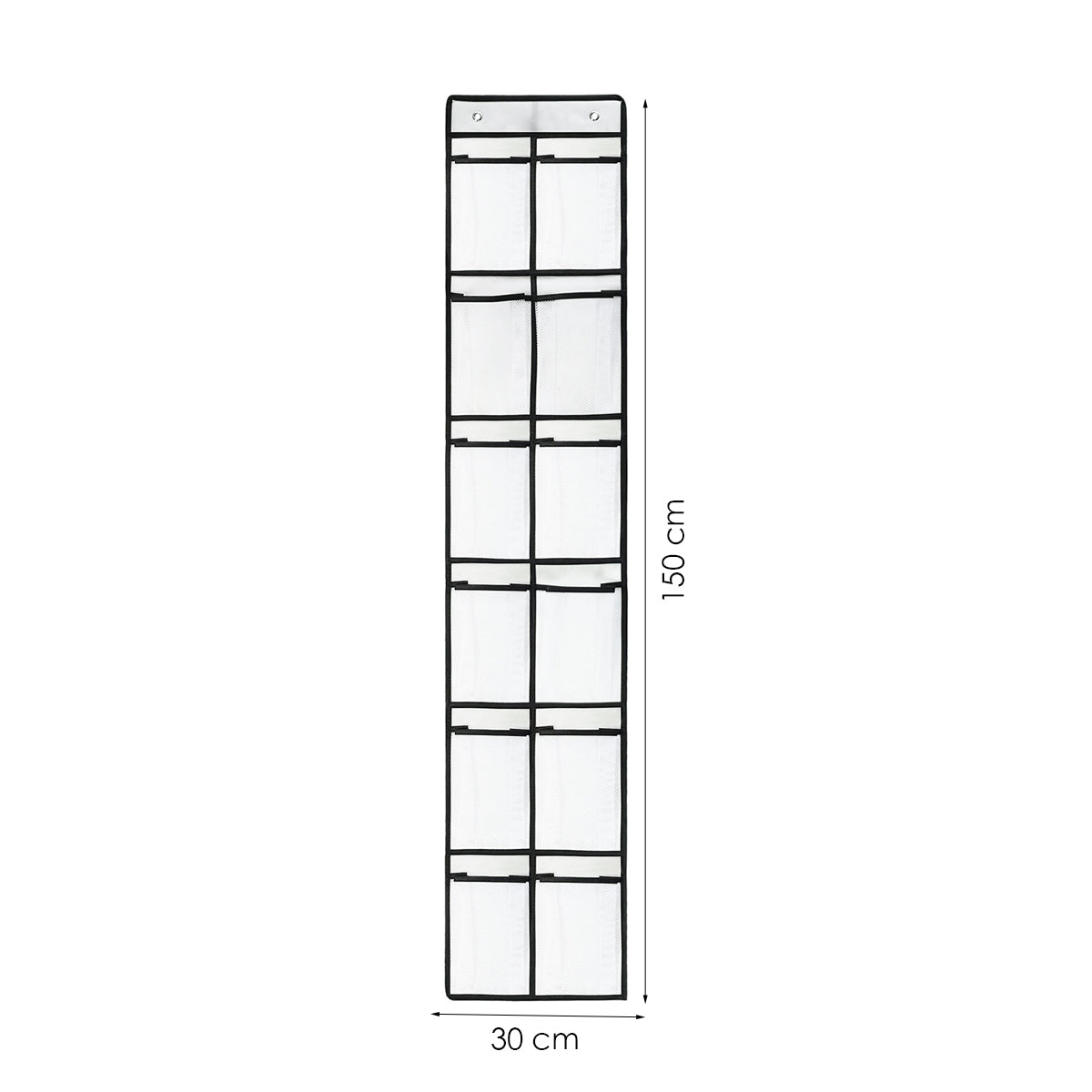 Deze schoenenzak kan met behulp van de deurhaken worden opgehangen aan de deur of in je kledingkast. De zak heeft 12 vakjes. Ideaal om je schoenen te beschermen tegen vuil, stof, vocht en bacteriën. Ook handig om sokken, kleding enz. op te bergen. Daarnaast biedt deze schoenenzak overzicht, zodat je ook de schoenen die je niet vaak draagt nooit uit het oog verliest.