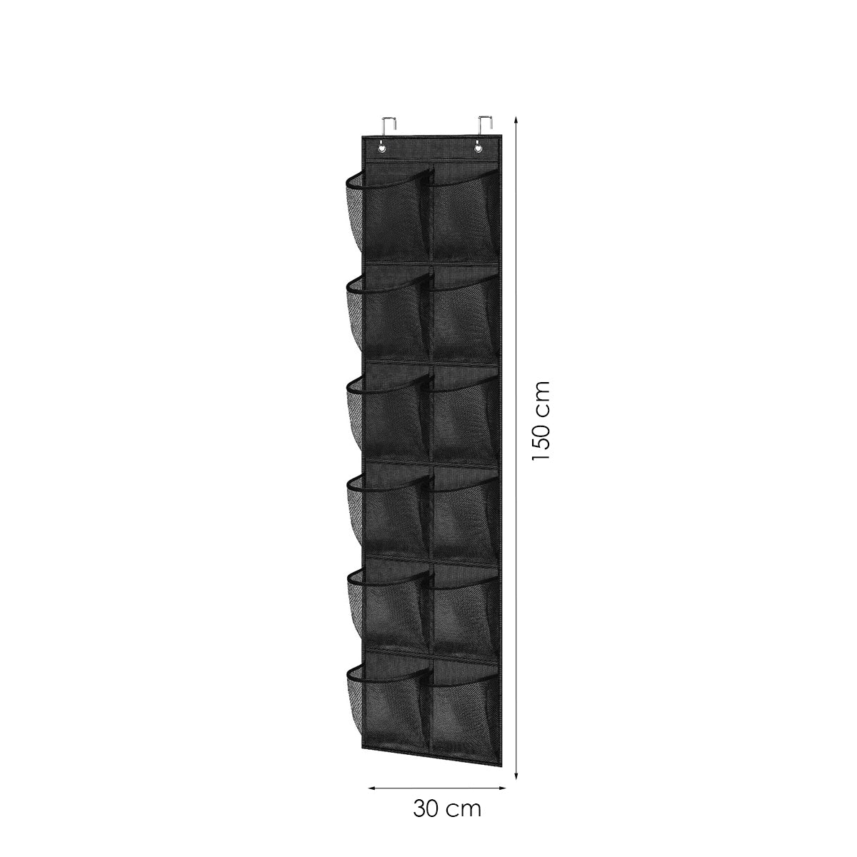 Schoenenkast Hangend - Schoenenzak 12 vakken - Opbergen van Schoenen aan Deur - Zwart