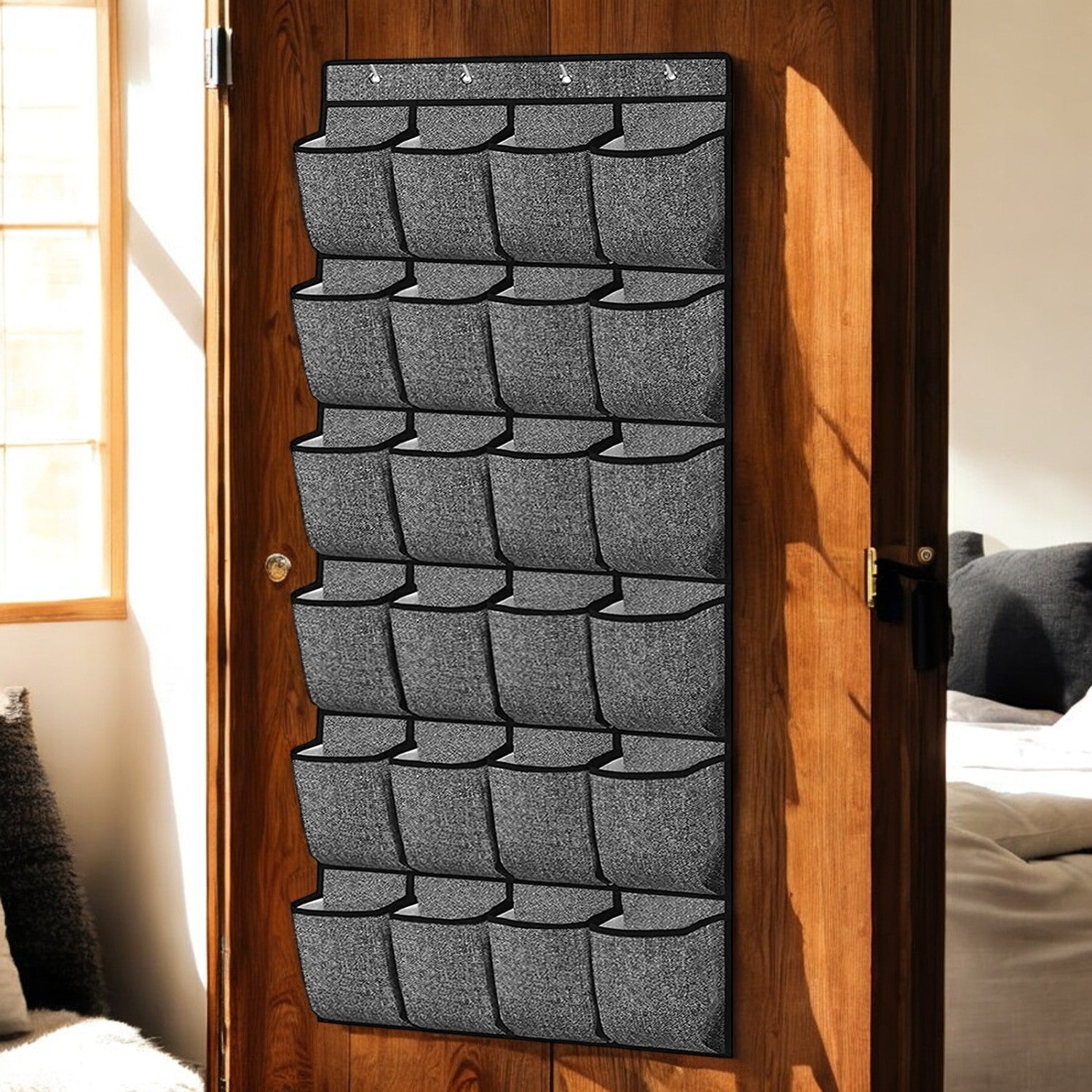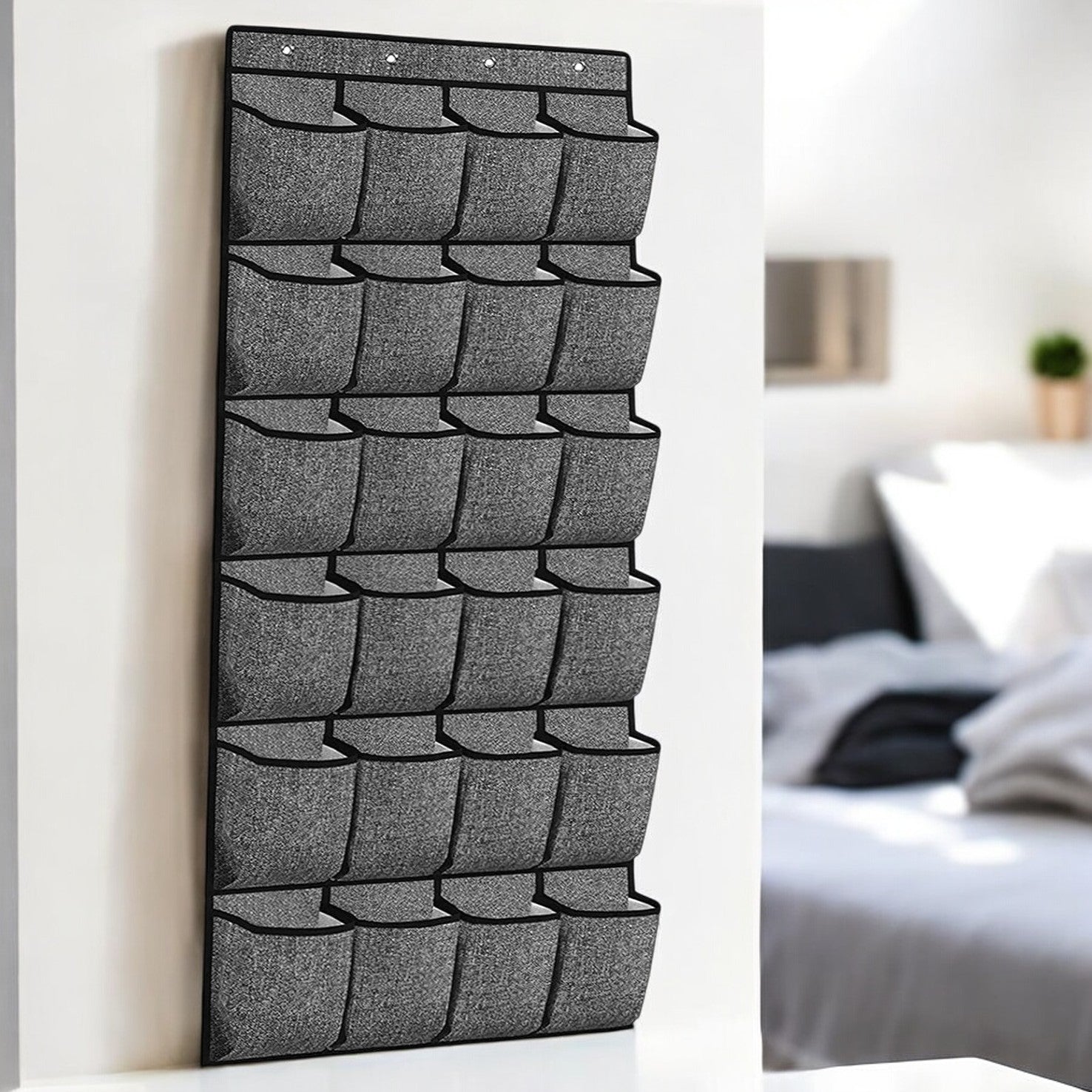 Schoenenkast Hangend - Schoenenzak 24 vakken - Opbergen van Schoenen aan Deur - Schoenenzak Grijs - Oplossing voor rondslingerende schoenen - Hoogwaardige Schoenenkast