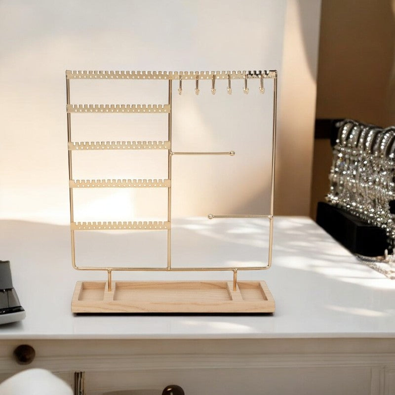 Sieradenhouder - 35 x 30 x 9,5 cm - Goudkleurig - Oorbellenrekje - Display - Hout en Metaal - Oorbellenhouder