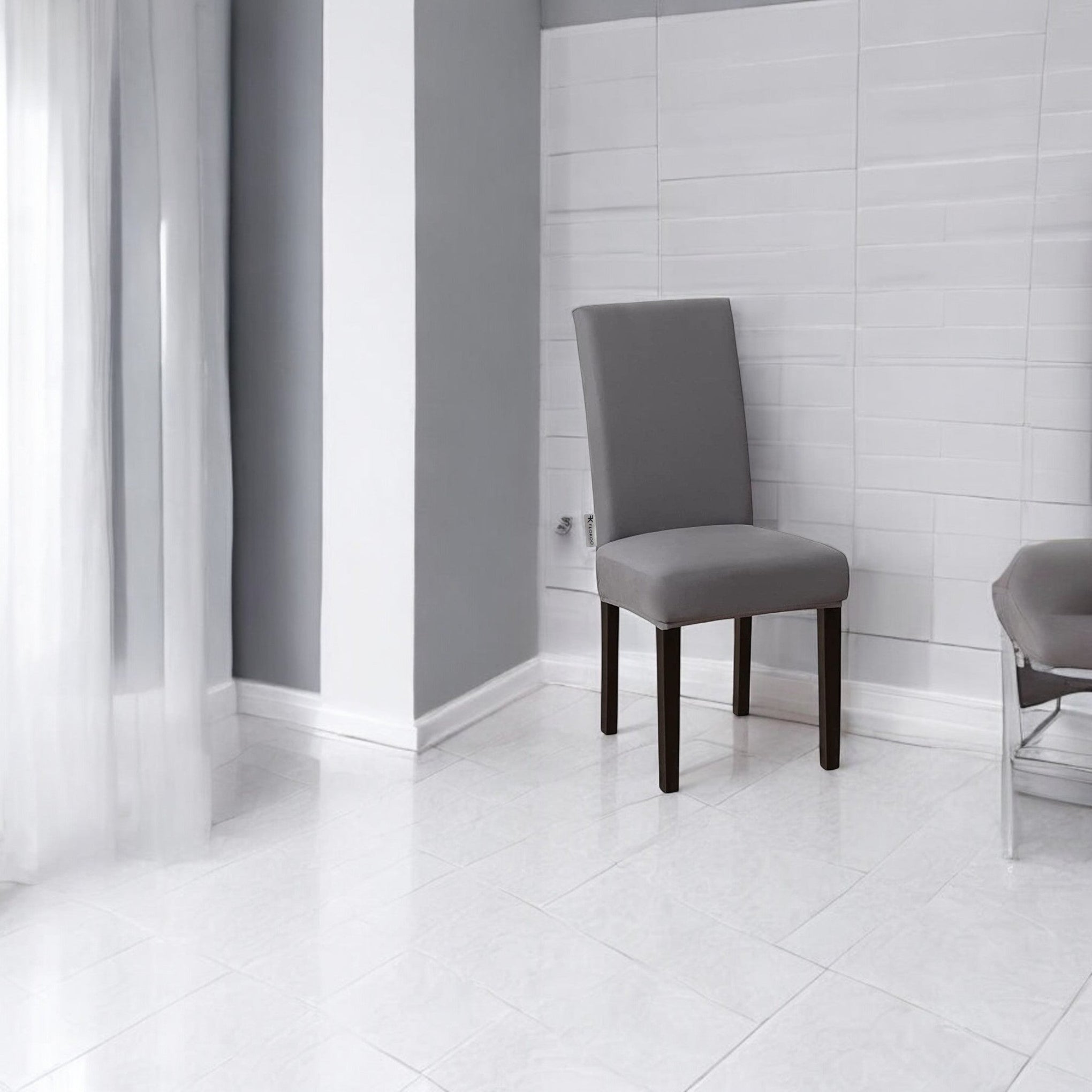 Geef in een handomdraai een nieuwe look aan je eetkamerstoelen voor een feestje of diner met deze prachtig grijze stoelhoezen.