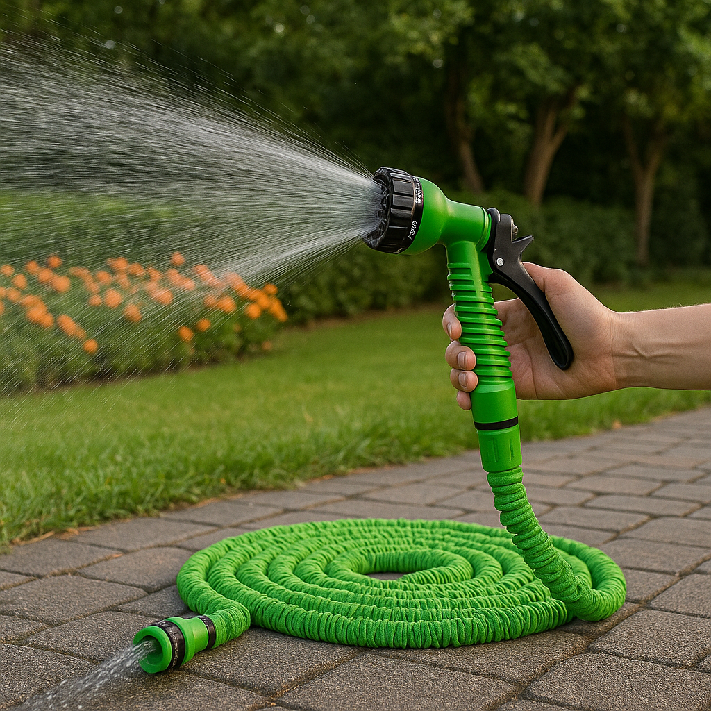 Tuinslang - 30 Meter Uitrekbare Tuinslang met Multisproeikop – Lichtgewicht, Compact & Duurzaam