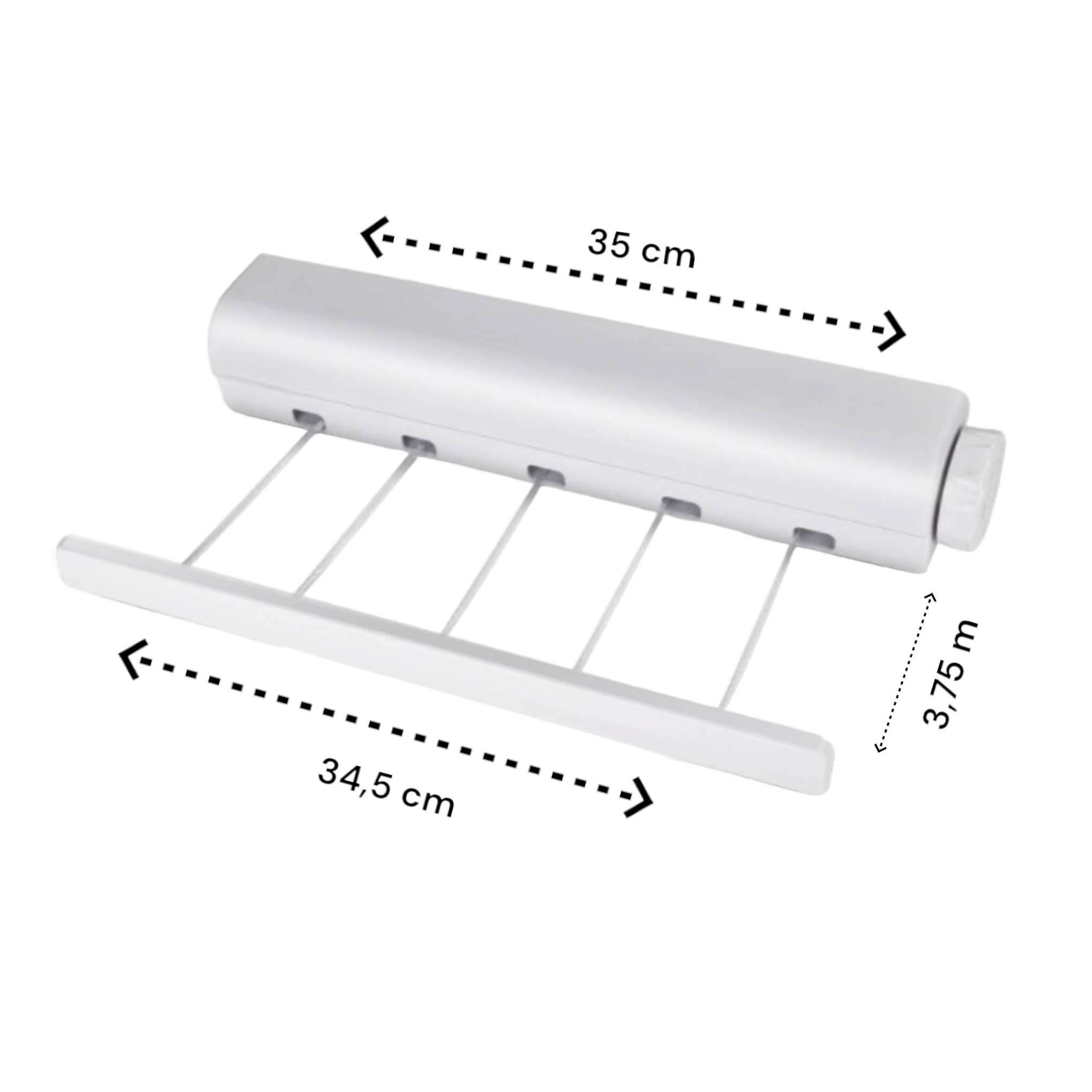 Waslijn Uittrekbaar - Wit - 3.75 meter - Ruimte Besparend - Roldrooglijn - Geschikt voor Binnen en Buiten