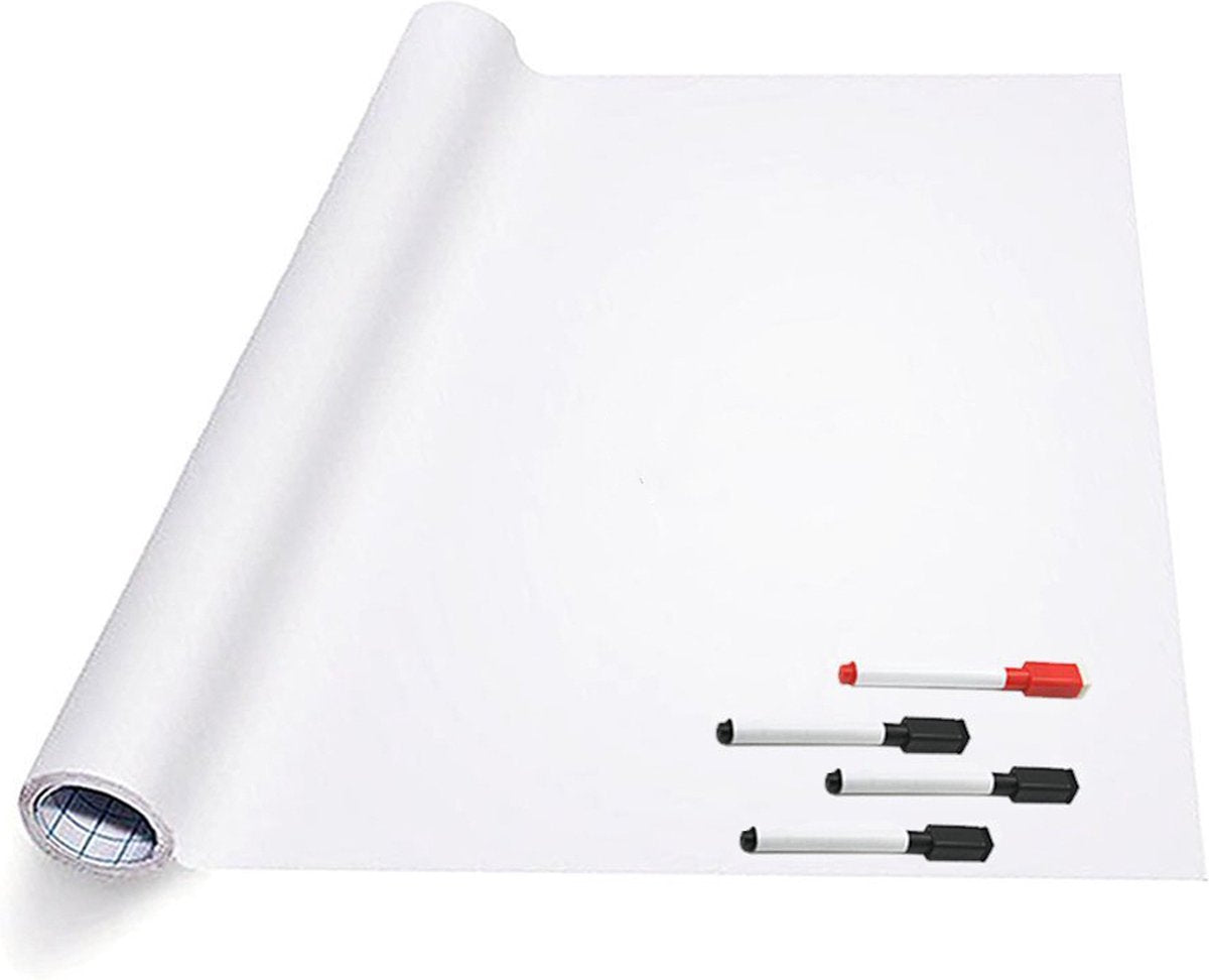 Whiteboard Folie XL Zelfklevend met 4 Stiften met Wisser - 90 x 100 cm