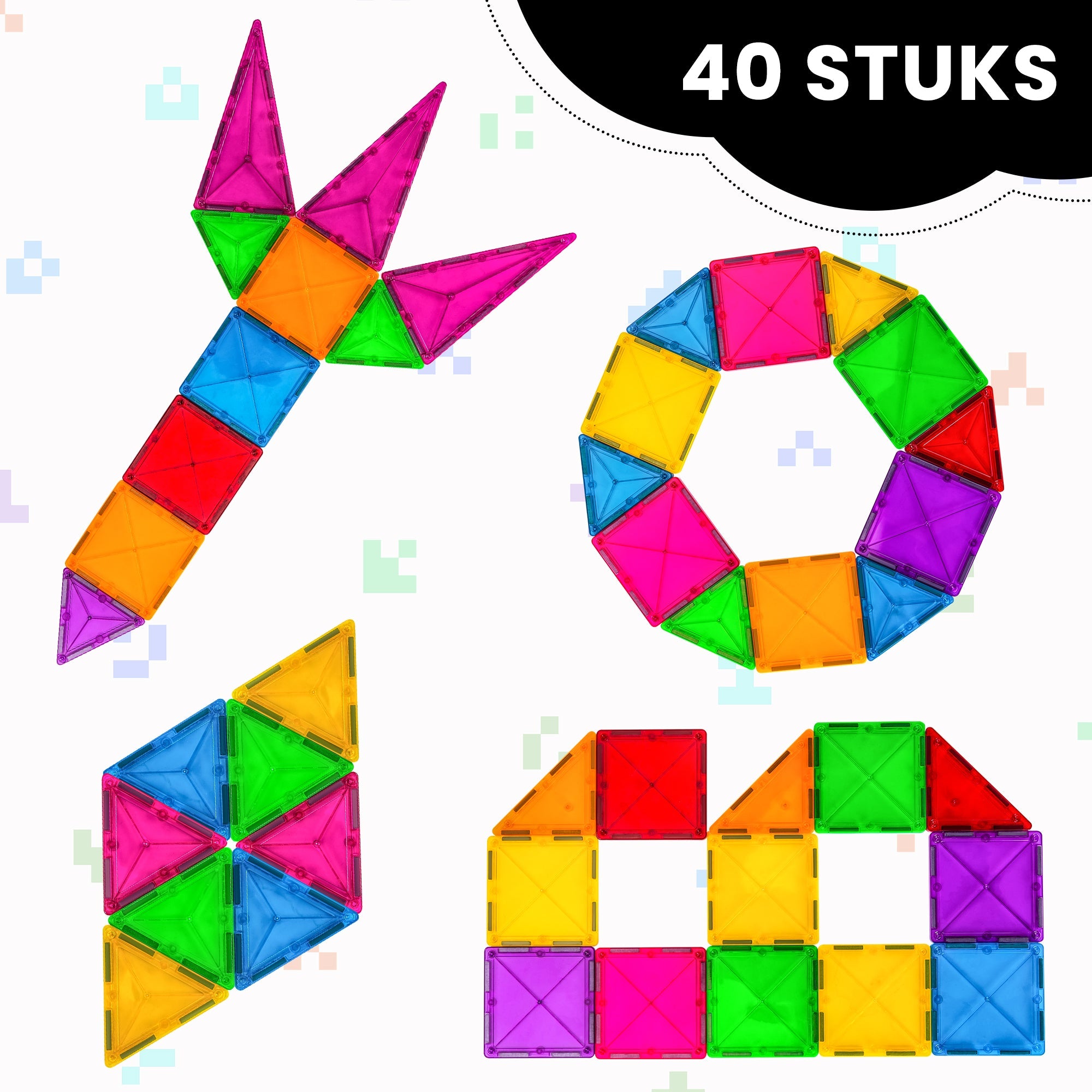 • Inclusief 40 kleurrijke magnetische bouwstenen