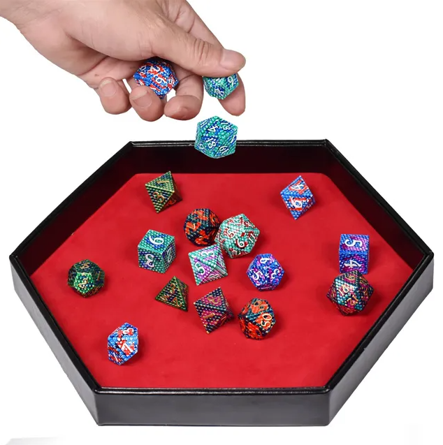 Dobbelsteen Bewaardoos & Dice Tray – Zwart Faux Leer met Rode Velours Binnenkant | Voor Dungeons & Dragons & TTRPG Dobbelstenen