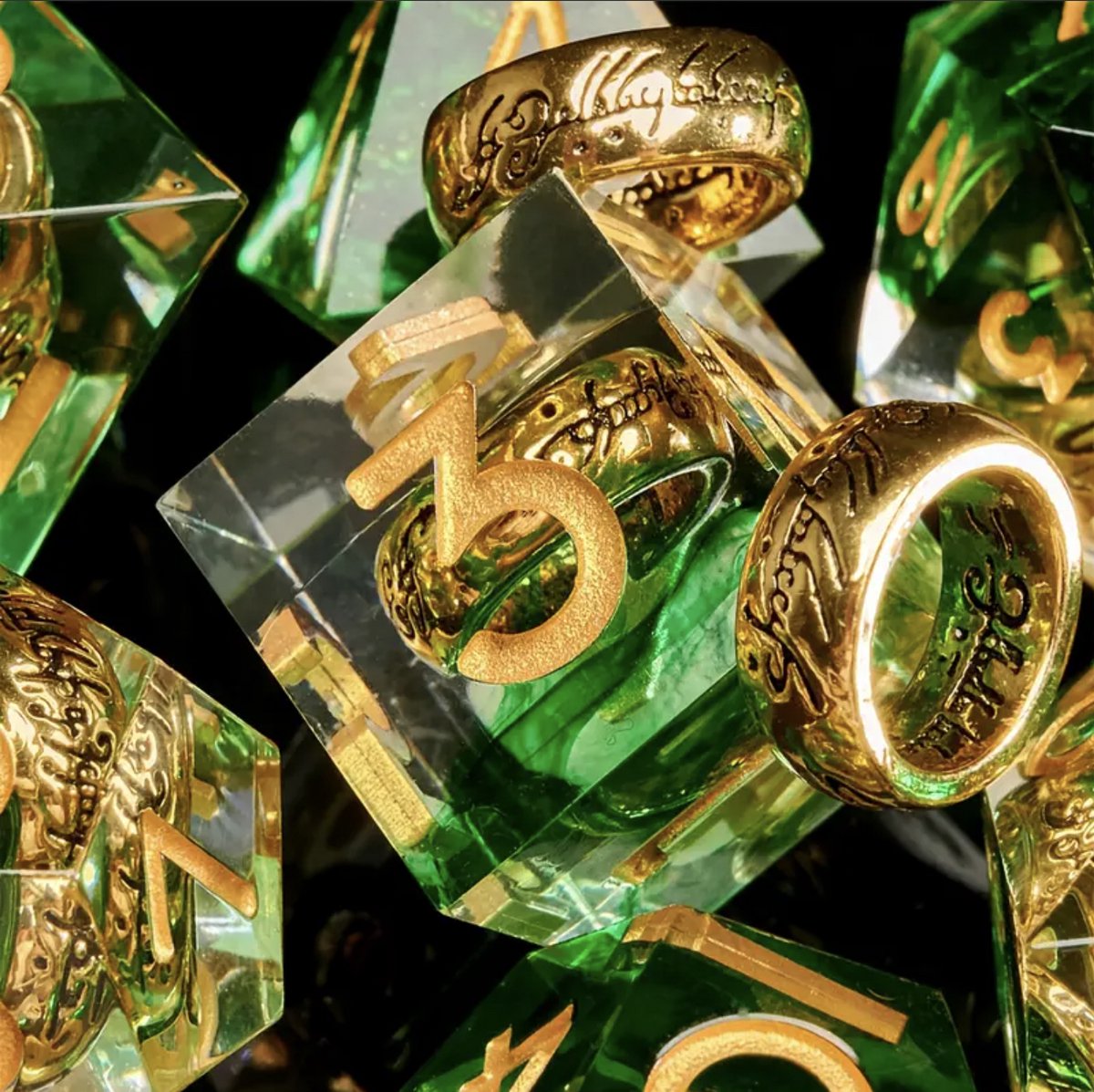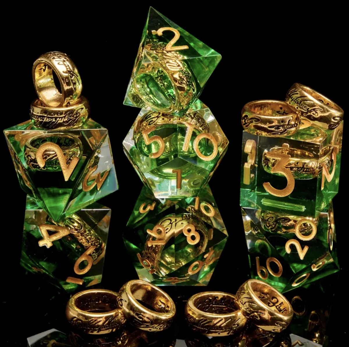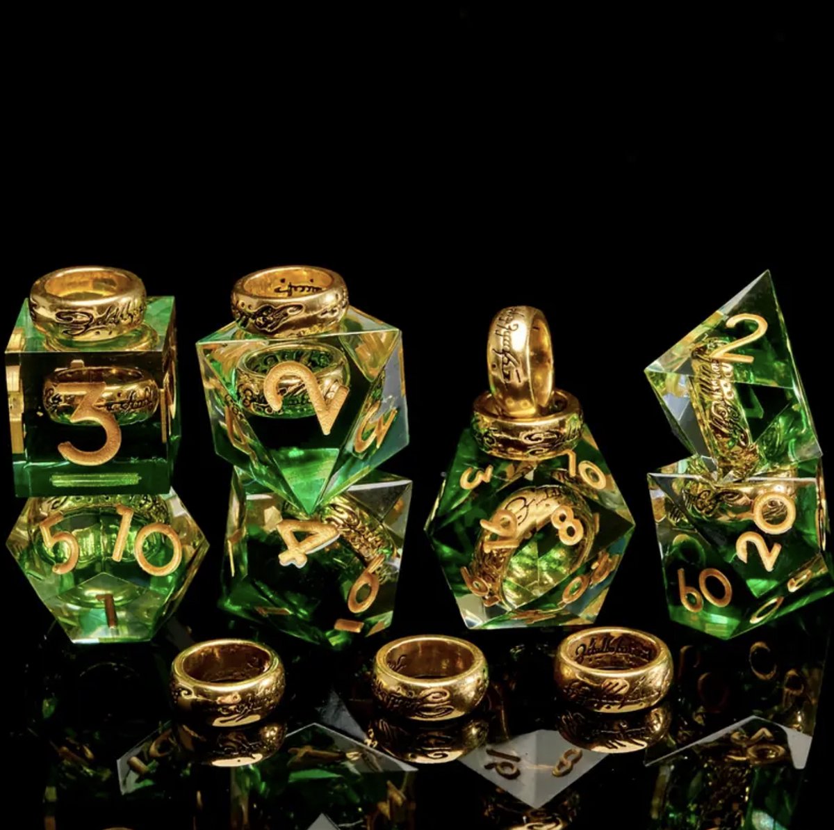 Dungeons and Dragons Dobbelsteen set Groen met Ring in de Stenen