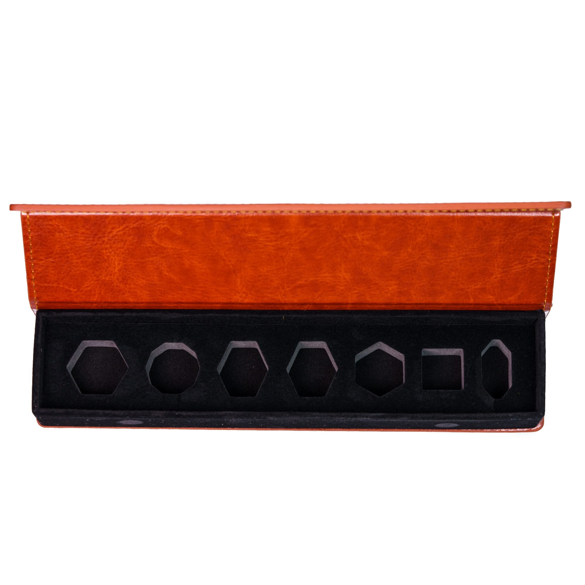 Luxe Dobbelsteen Bewaardoos – Langwerpig Ontwerp in Cognac Bruin Faux Leer | Voor Dungeons & Dragons (7-Delige Set)