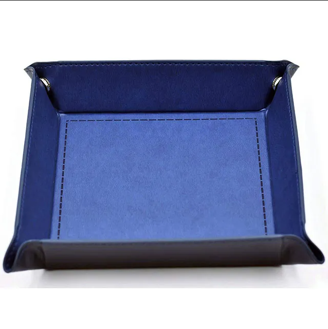 Opvouwbare Dice Tray – Zwart Kunstleer | Voor Dungeons & Dragons & TTRPG Dobbelstenen Blauw