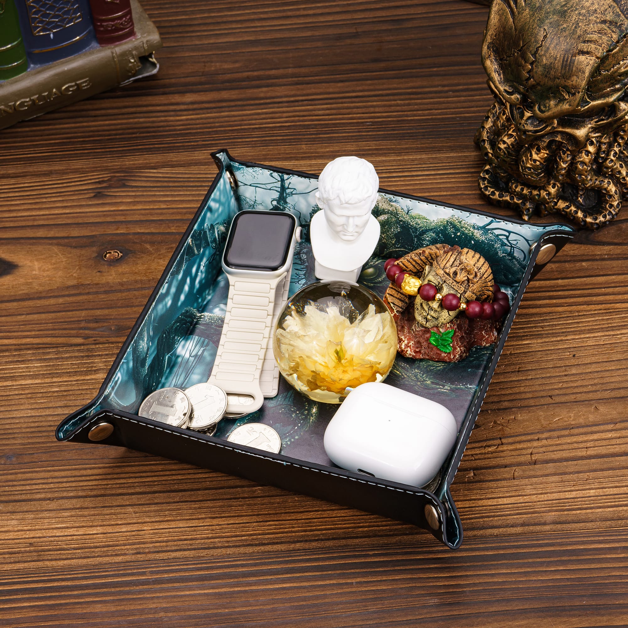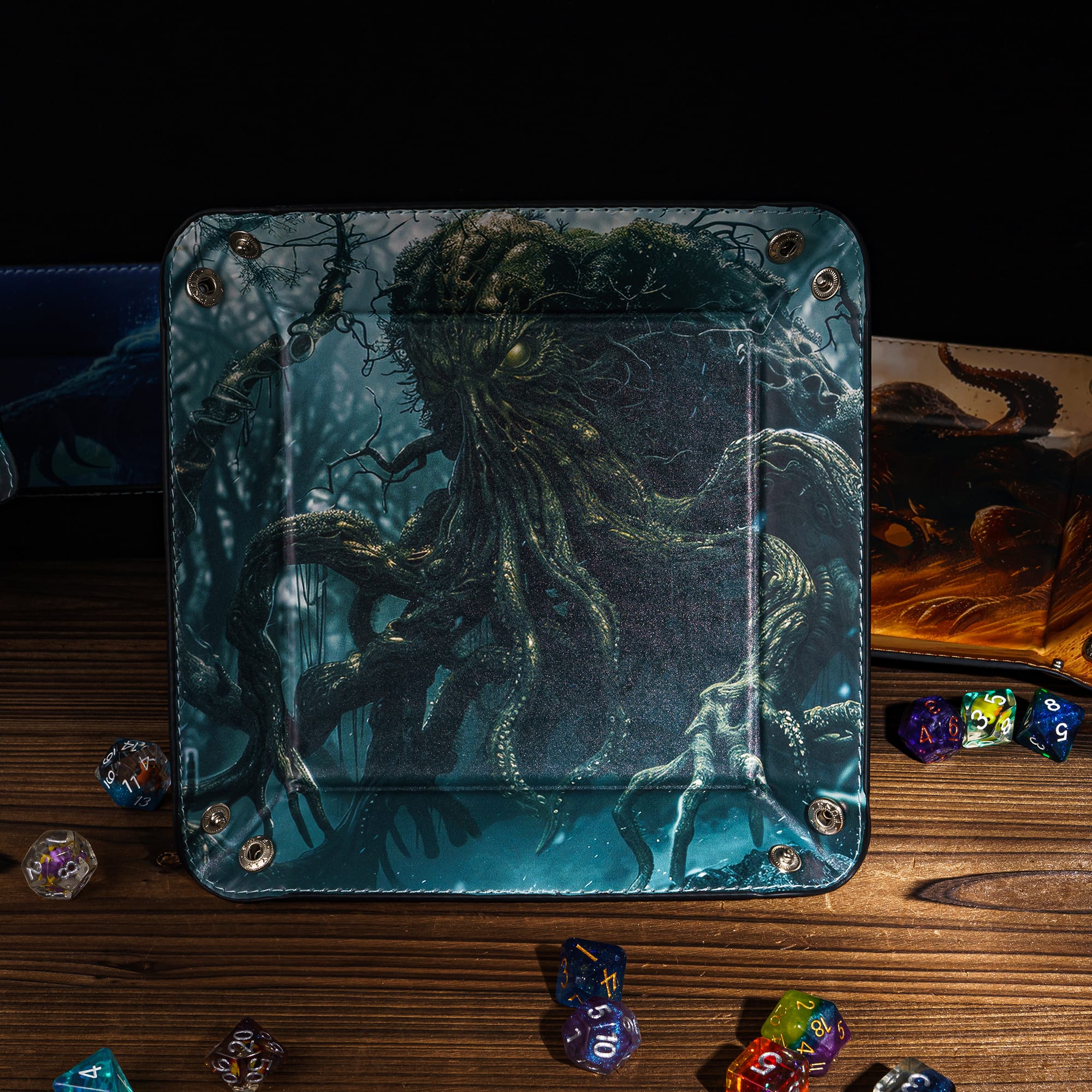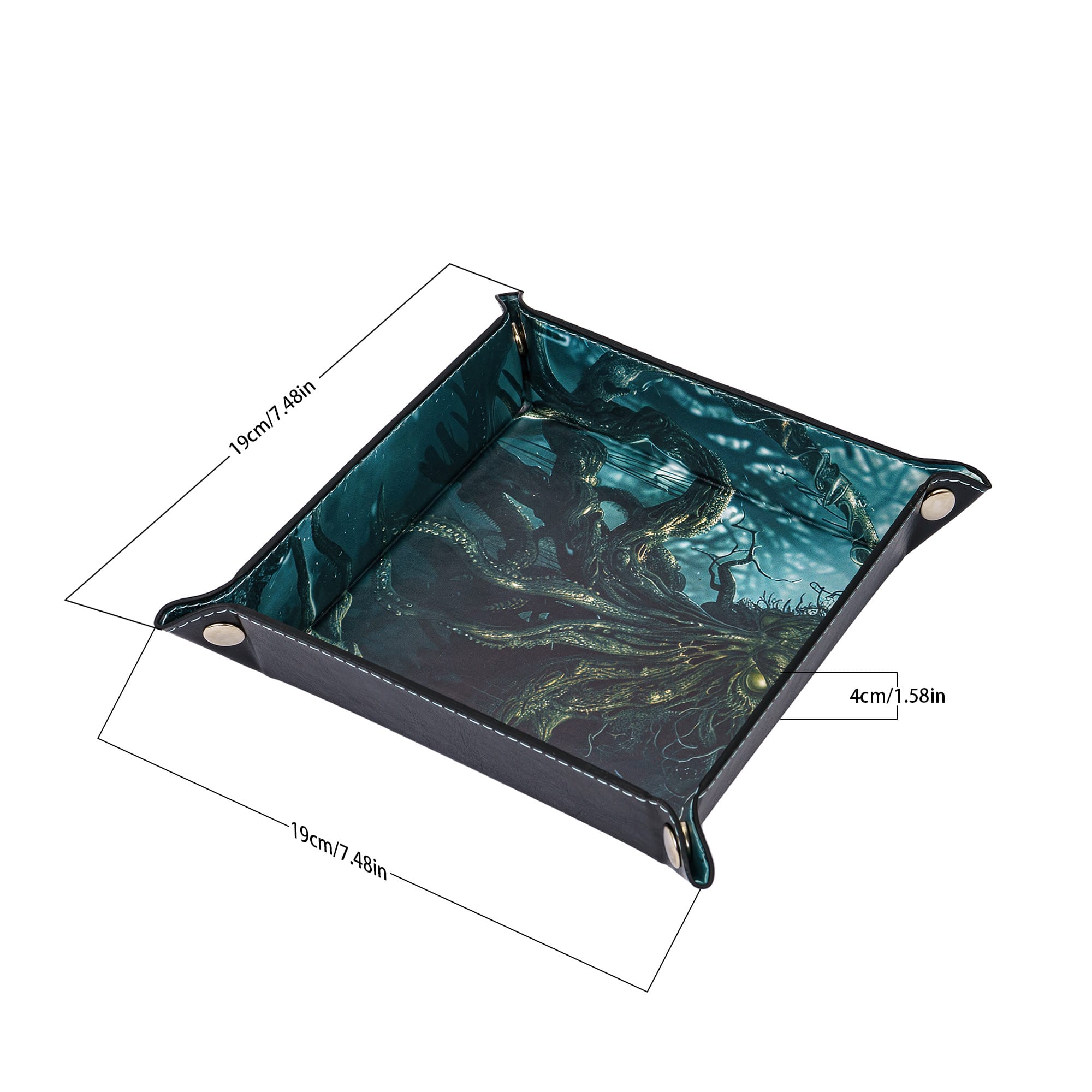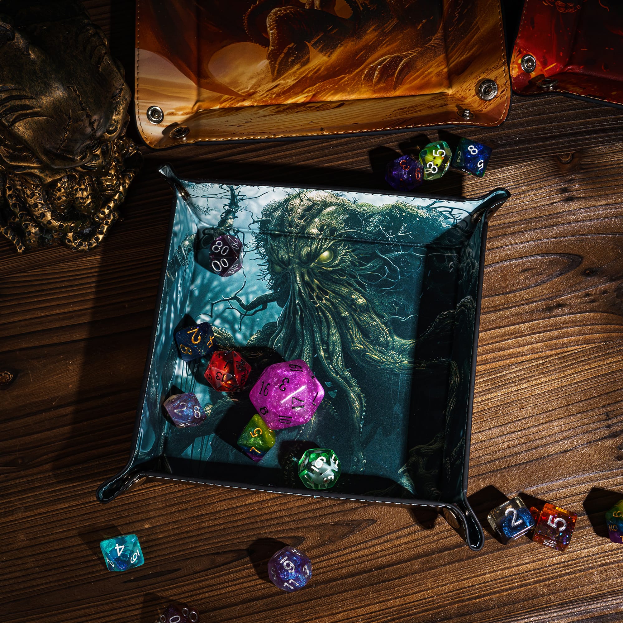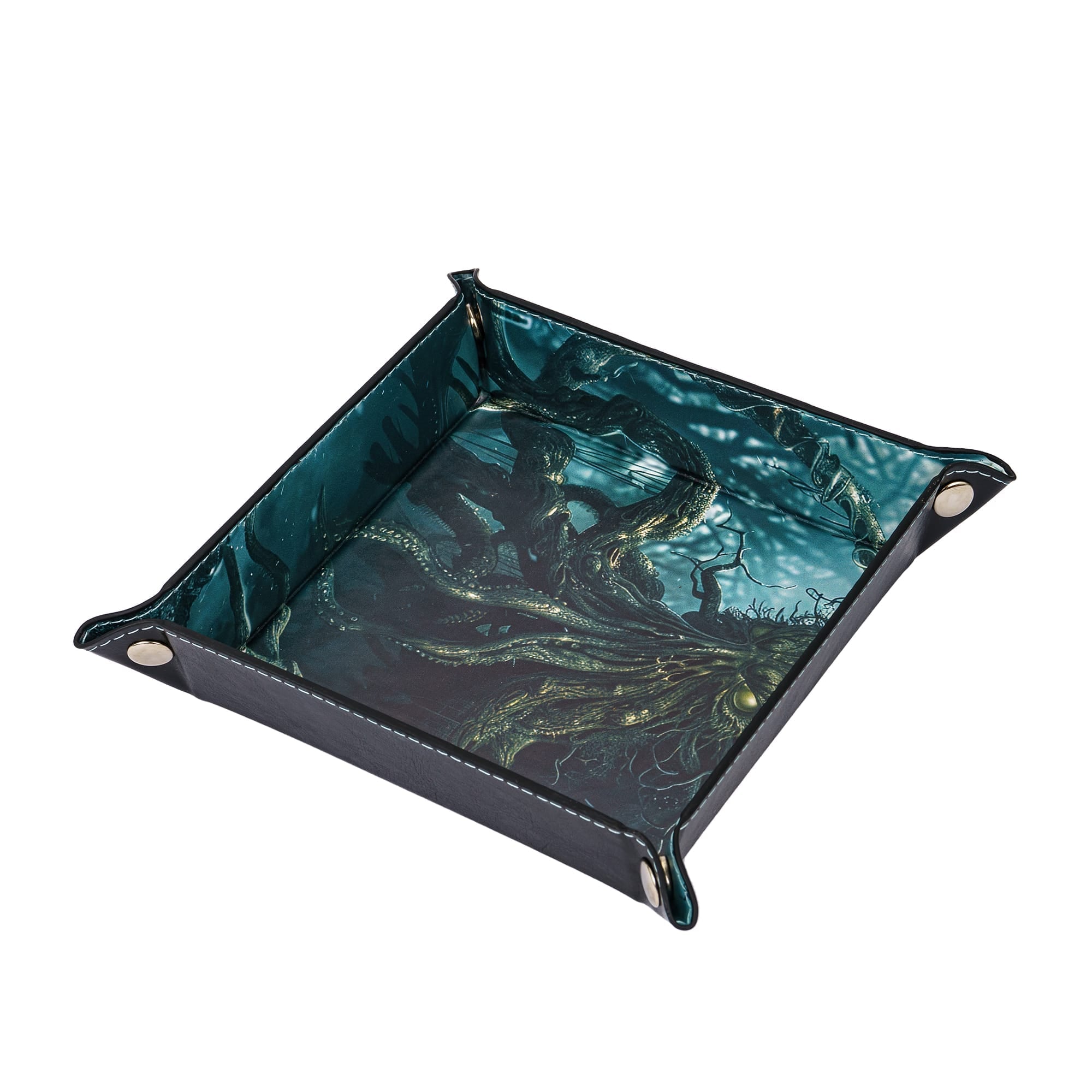 Dankzij het opvouwbare ontwerp neem je de tray gemakkelijk mee naar al je spelsessies – van je huiskamer tot de lokale game store. In enkele seconden klik je de hoeken in elkaar tot een stevige, vierkante tray waar je dobbelstenen stil en veilig in landen.