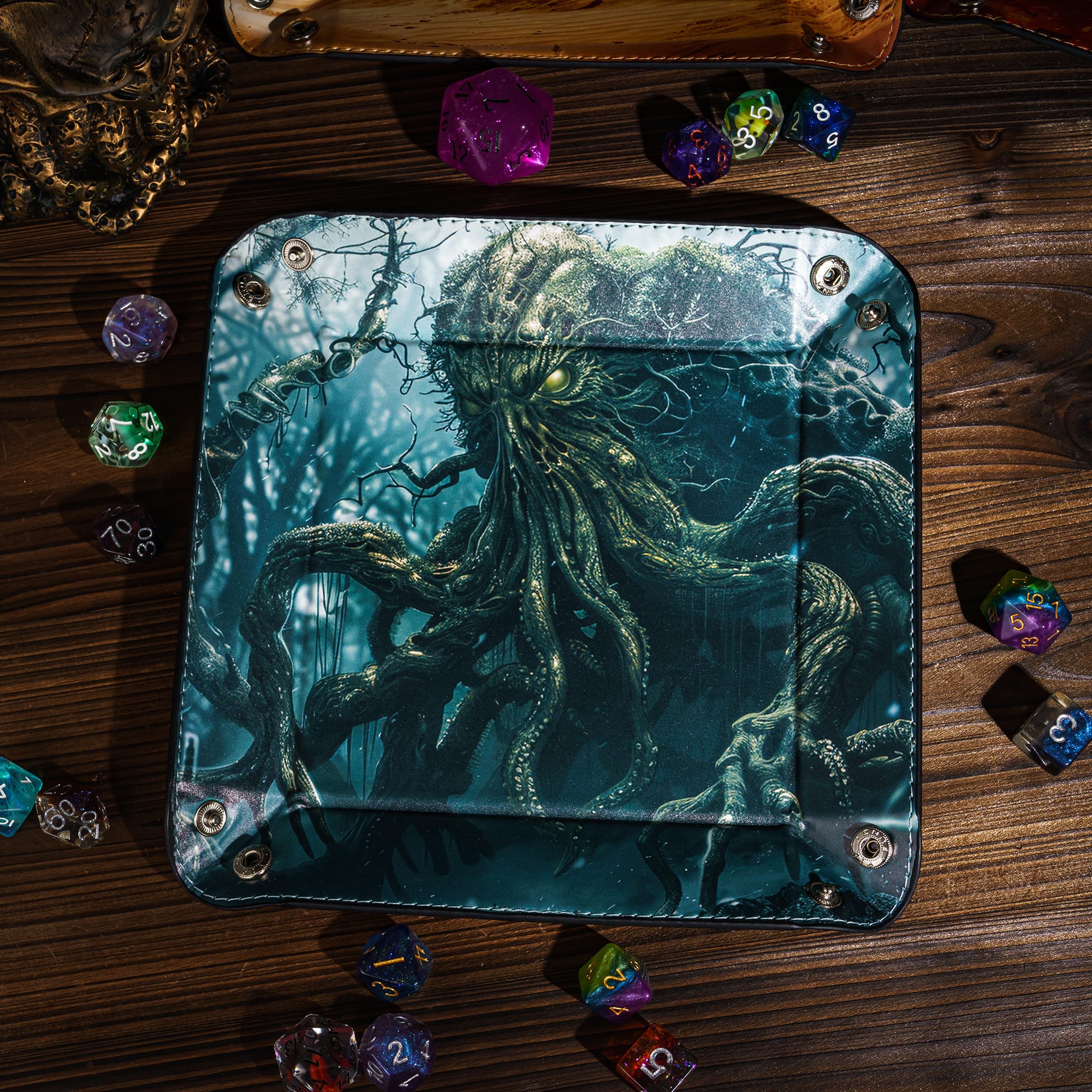 Opvouwbare Dice Tray – Zwart Kunstleer | Voor Dungeons & Dragons & TTRPG Dobbelstenen Monster Blauw