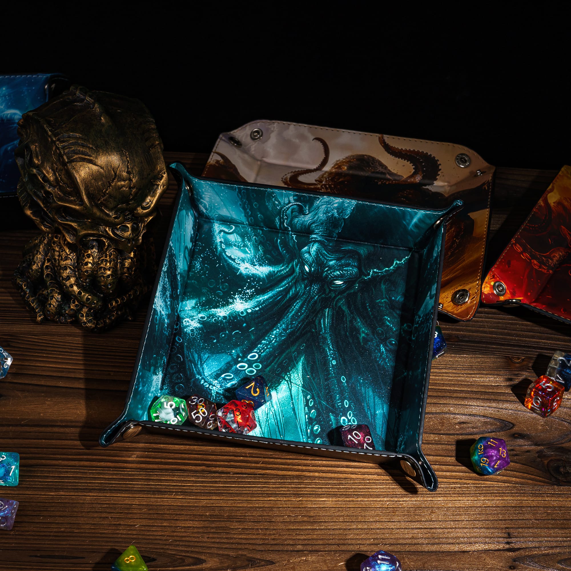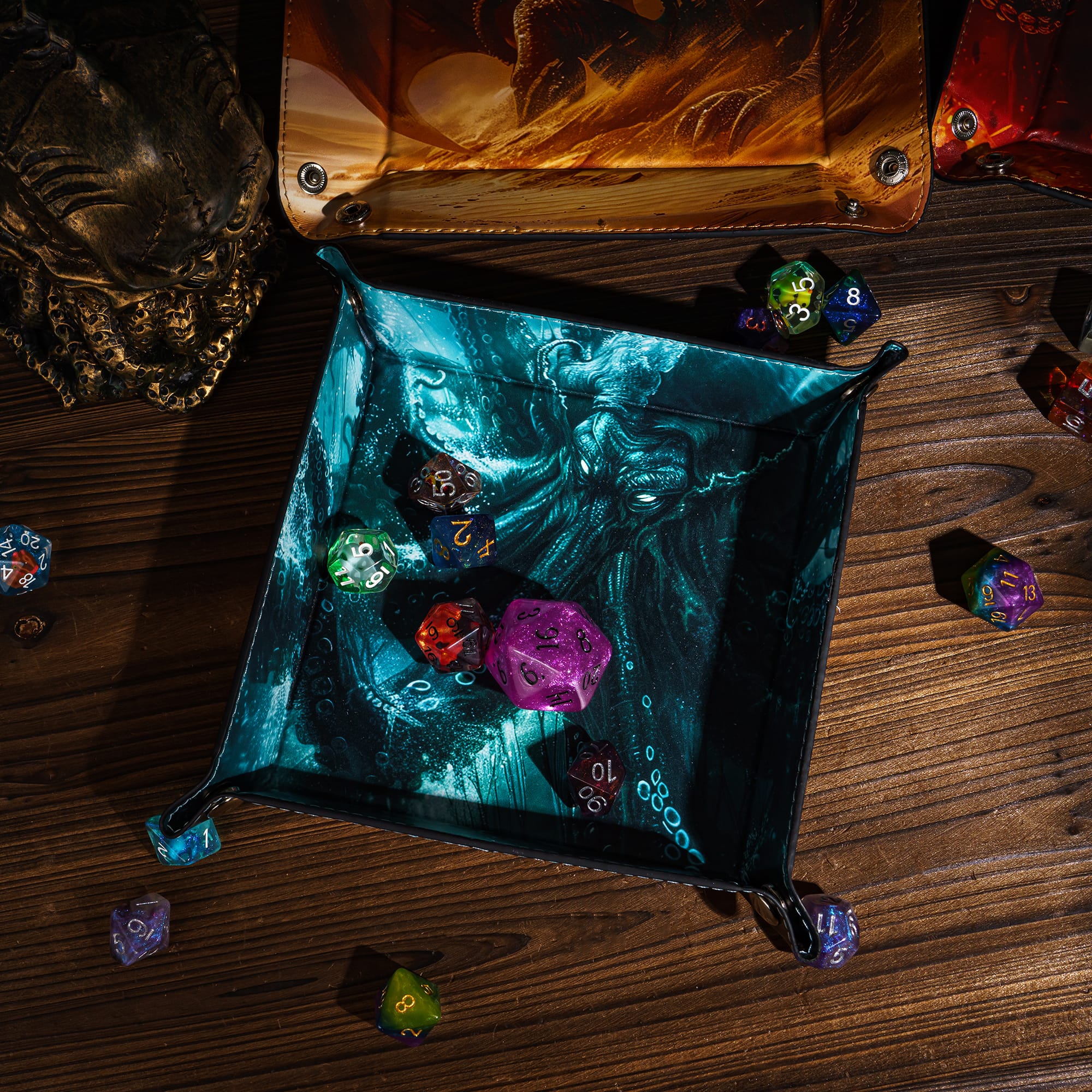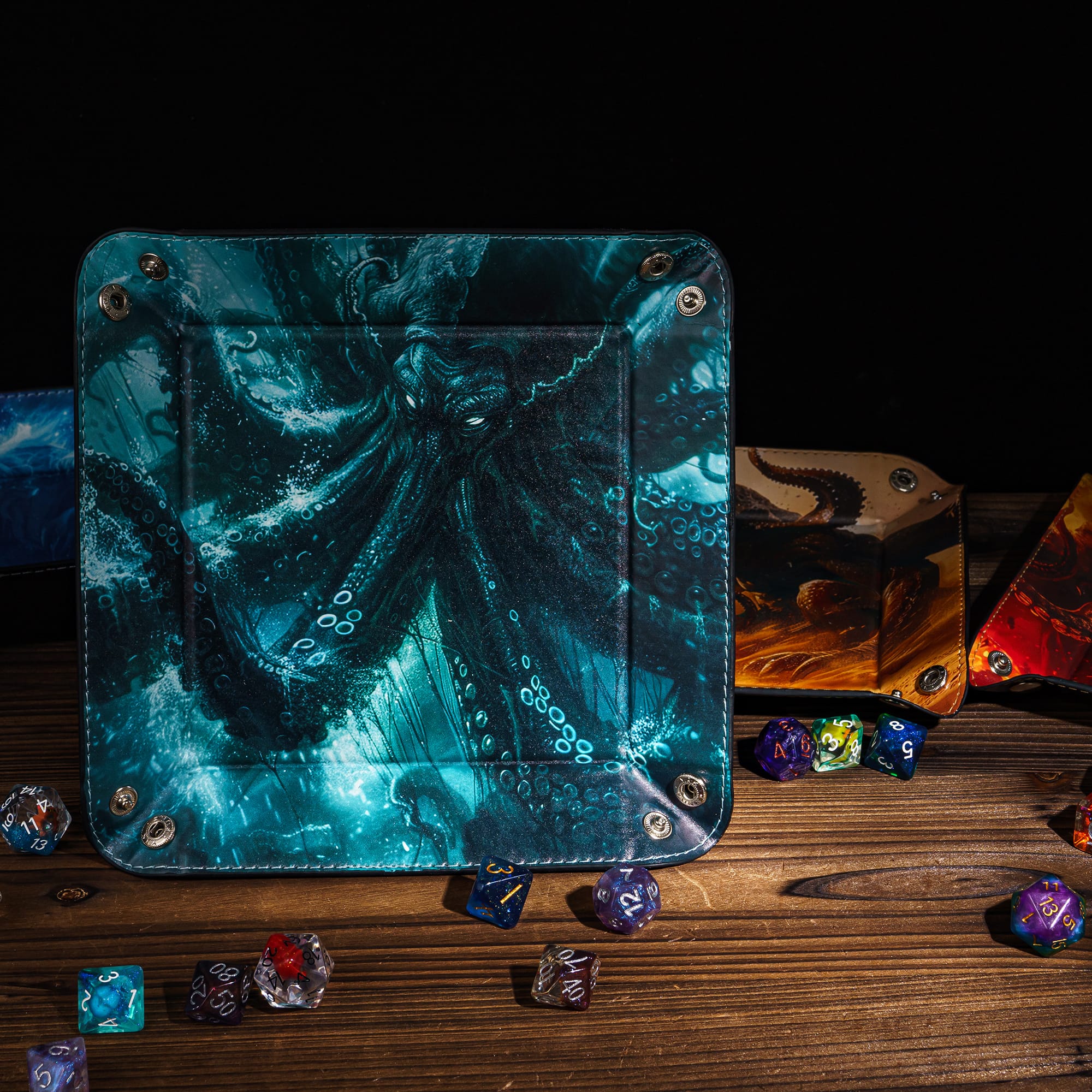 Opvouwbare Dice Tray – Zwart Kunstleer | Voor Dungeons & Dragons & TTRPG Dobbelstenen Monster Blauw Oceaan