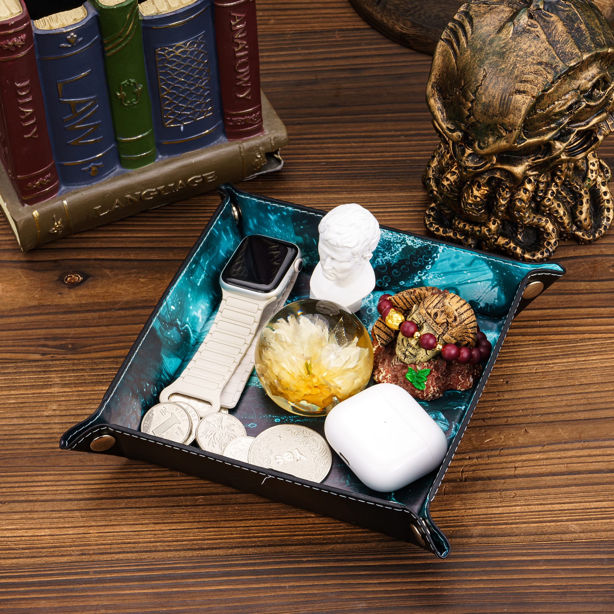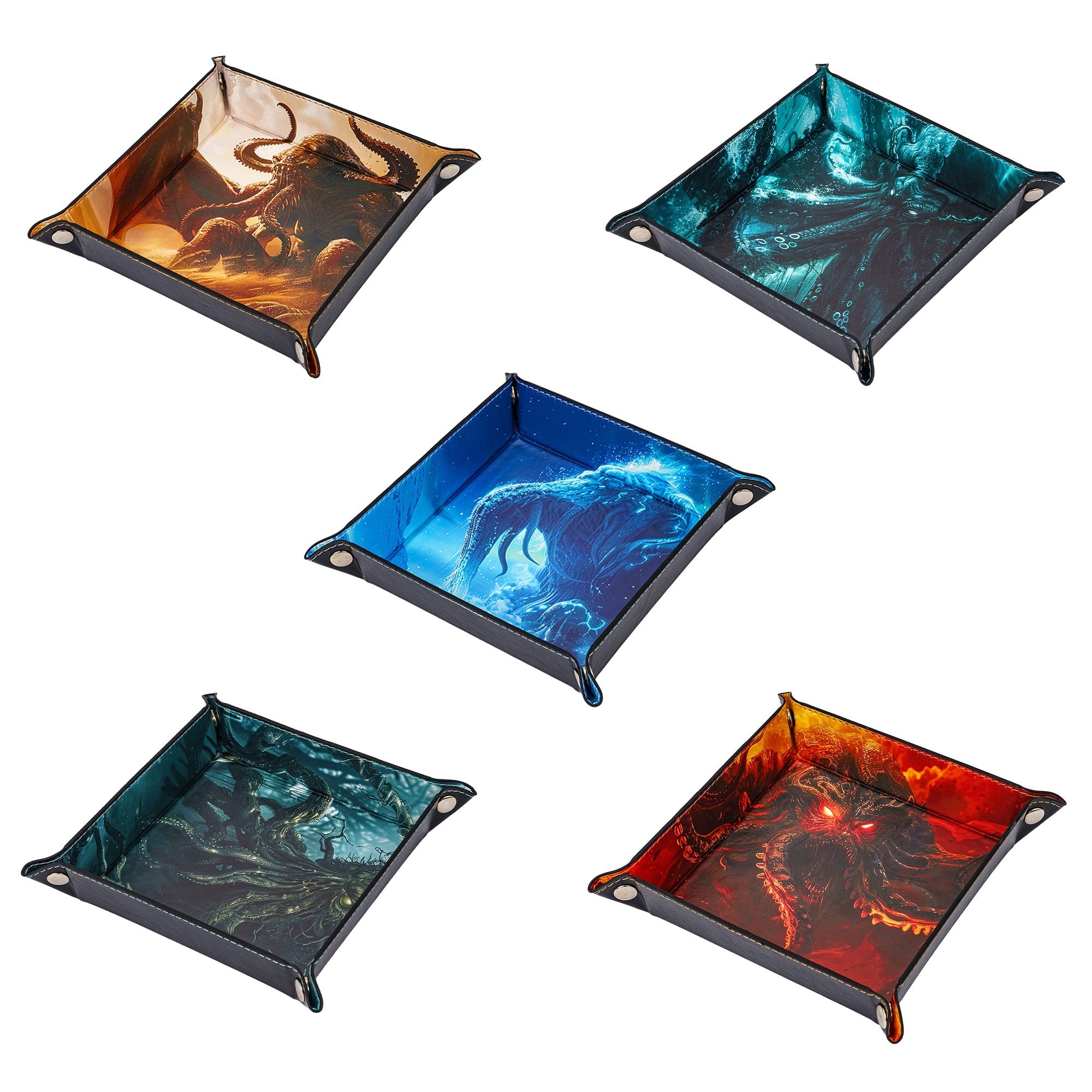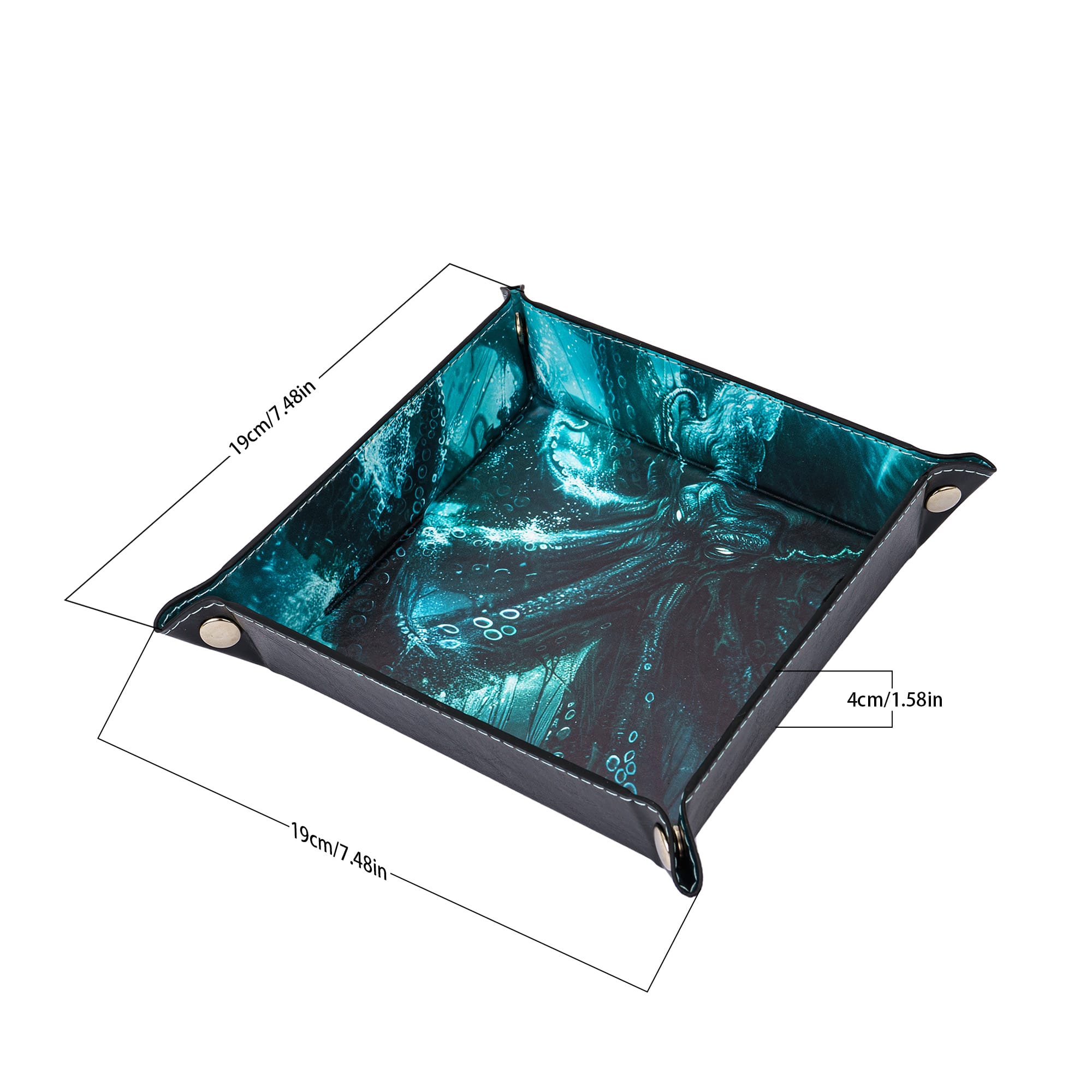 Opvouwbare Dice Tray – Zwart Kunstleer | Voor Dungeons & Dragons & TTRPG Dobbelstenen Monster Blauw Oceaan