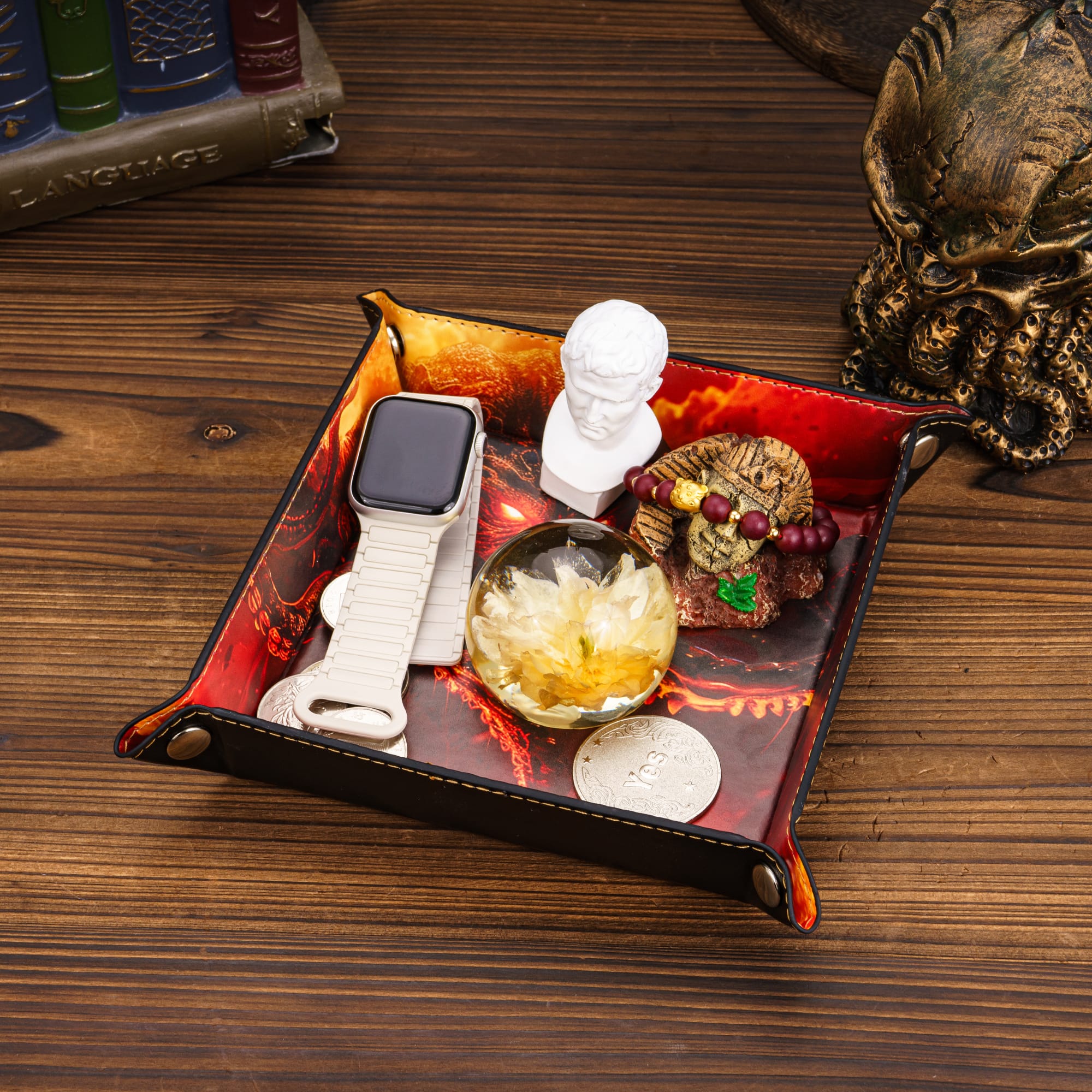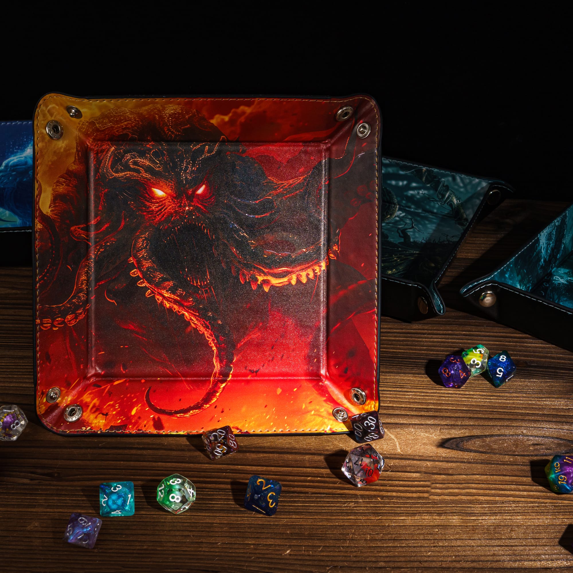 Opvouwbare Dice Tray – Zwart Kunstleer | Voor Dungeons & Dragons & TTRPG Dobbelstenen Monster Rood